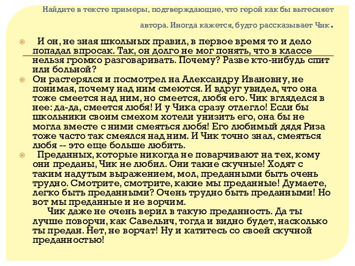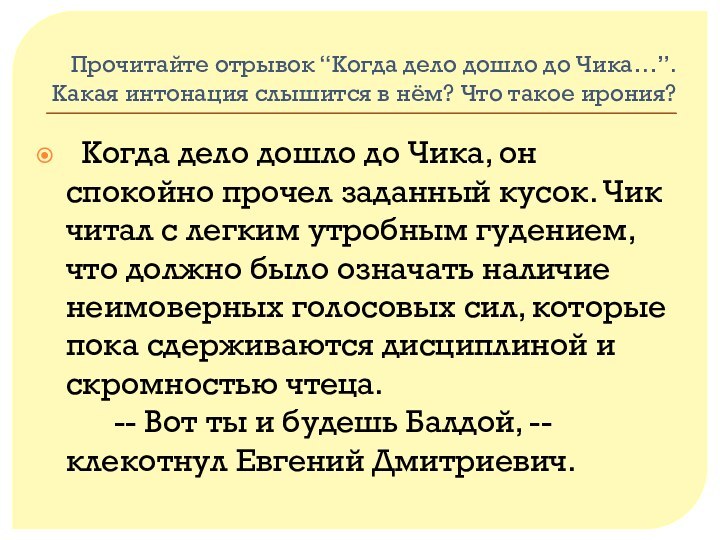 Слайд 6 Прочитайте отрывок “Когда дело дошло до Чика…”. Какая