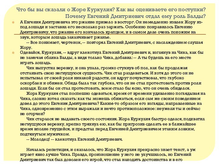 Слайд 11 Что бы вы сказали о Жоре Куркулия? Как
