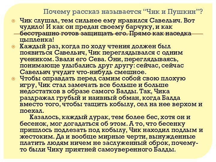 Слайд 10 Почему рассказ называется “Чик и Пушкин”?