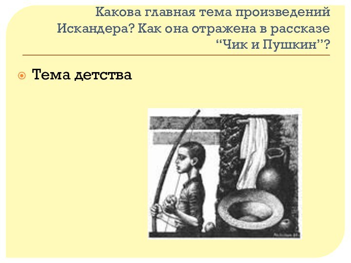 Какова главная тема произведений Искандера? Как она отражена в рассказе “Чик и Пушкин”? Тема детства