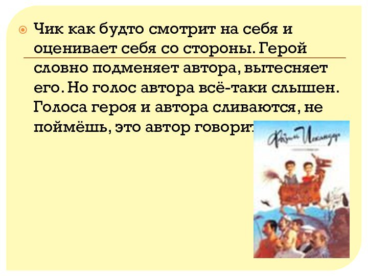бы вытесняет автора. Иногда кажется, будто рассказывает Чик.