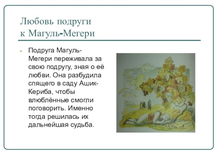 Ашик-Кериба, чтобы влюблённые смогли поговорить. Именно тогда решилась их дальнейшая судьба.