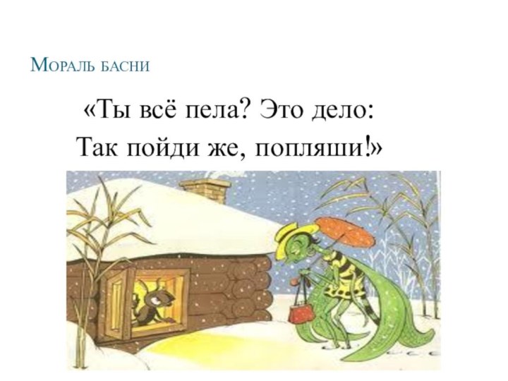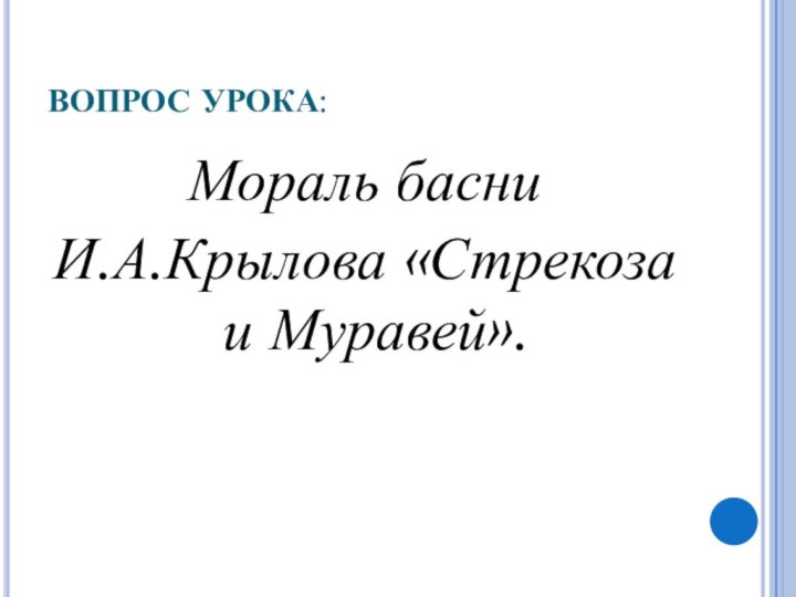 ВОПРОС УРОКА: Мораль басни И.А.Крылова «Стрекоза и Муравей».