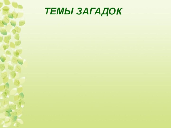 Слайд 22 ТЕМЫ ЗАГАДОК