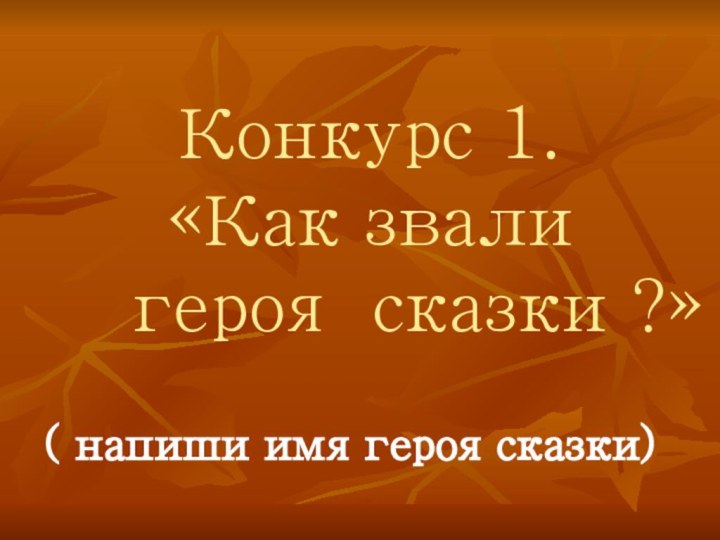 Конкурс 1. «Как звали  героя сказки ?» ( напиши имя героя сказки)