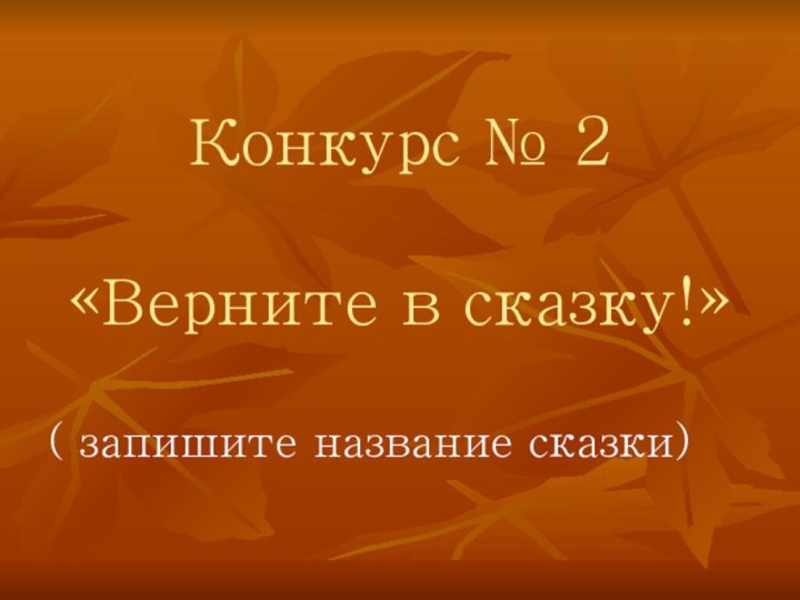 Конкурс № 2 «Верните в сказку!»( запишите название сказки)