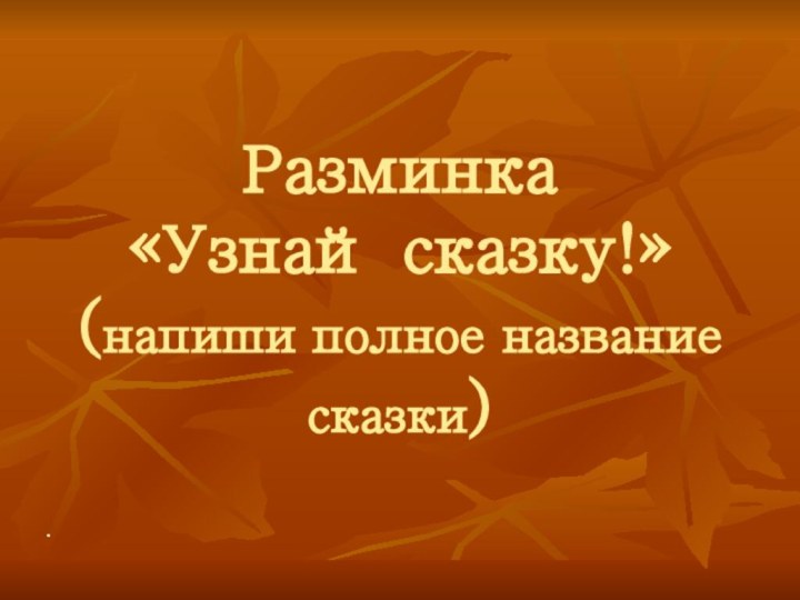Разминка «Узнай сказку!» (напиши полное название сказки)