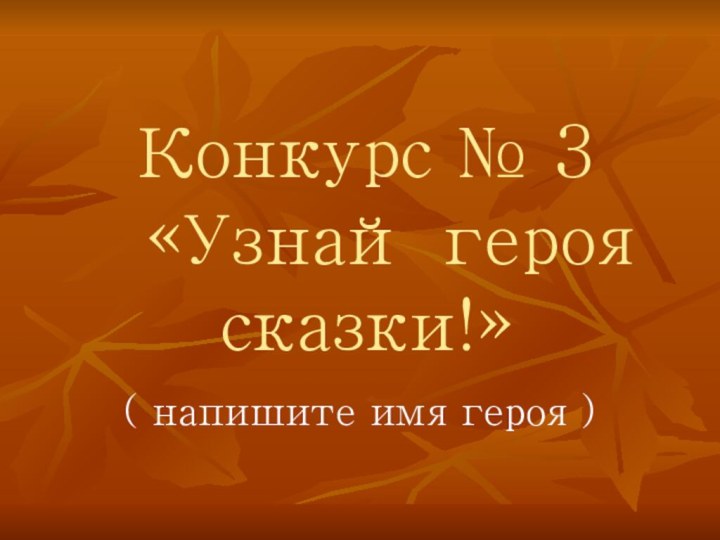 Конкурс № 3 «Узнай героя сказки!» ( напишите имя героя )