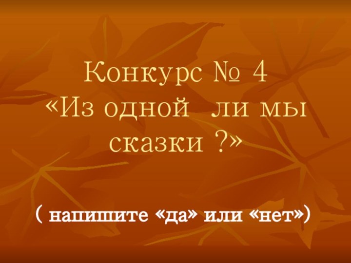 Конкурс № 4 «Из одной ли мы сказки ?» ( напишите «да» или «нет»)
