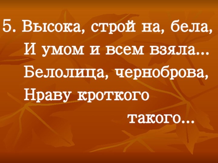 5. Высока, стройна, бела, И умом и всем взяла... Белолица, черноброва,
