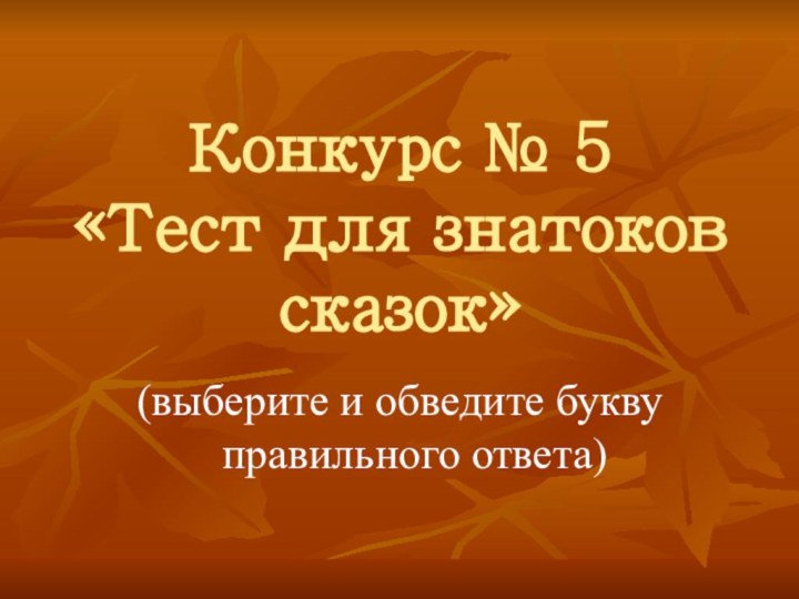 Слайд 27 Конкурс № 5 «Тест для знатоков сказок»
