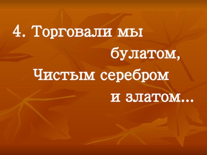 4. Торговали мы      булатом, Чистым серебром