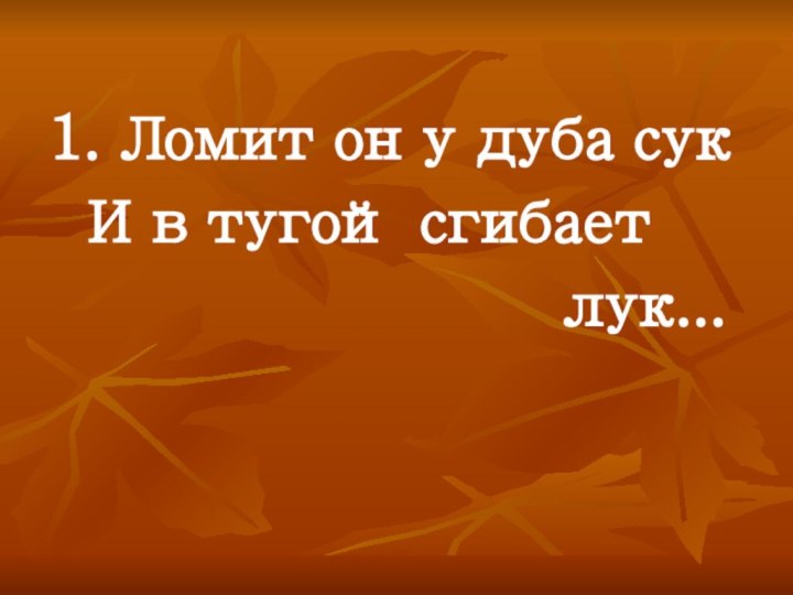 1. Ломит он у дуба сук И в тугой сгибает