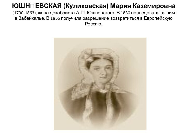 Слайд 18 ЮШ͘ЕВСКАЯ (Куликовская) Мария Каземировна (1790-1863), жена декабриста А.