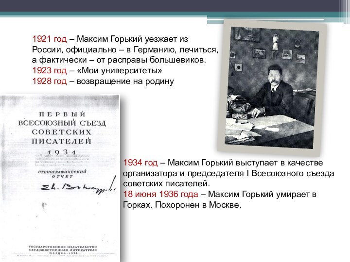 Слайд 10 1934 год – Максим Горький выступает в качестве