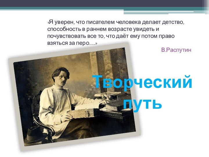 Творческий путь«Я уверен, что писателем человека делает детство, способность в раннем