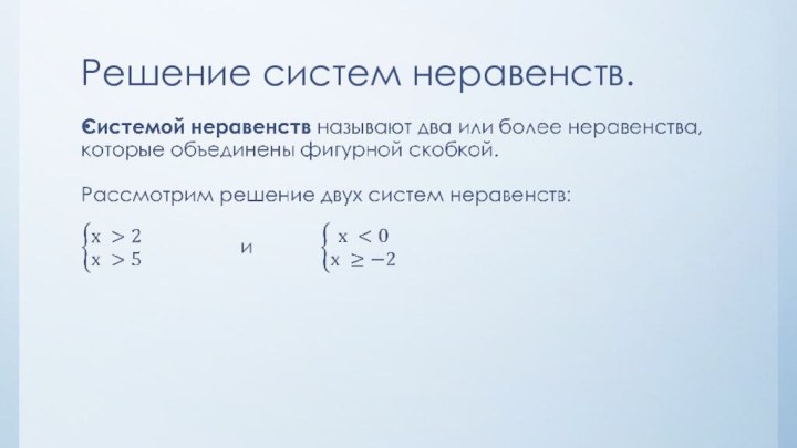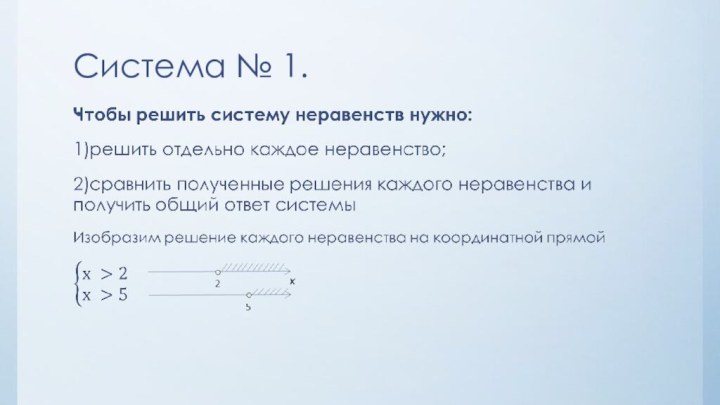 15Решением неравенства является любое значение переменой, при котором это неравенство будет верно. "Решить неравенство" означает, что надо найти множество всех его решений. Существуют различные методы решения неравенств. Для решения неравенства пользуются числовой прямой, которая бесконечна.