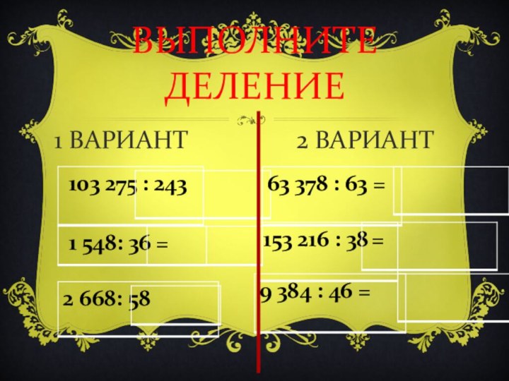 ВЫПОЛНИТЕ ДЕЛЕНИЕ1 ВАРИАНТ     2 ВАРИАНТ