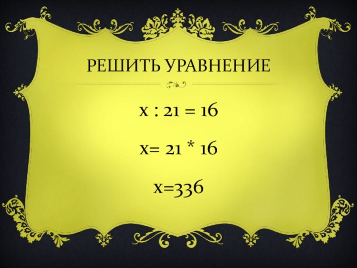 РЕШИТЬ УРАВНЕНИЕх : 21 = 16х= 21 * 16х=336