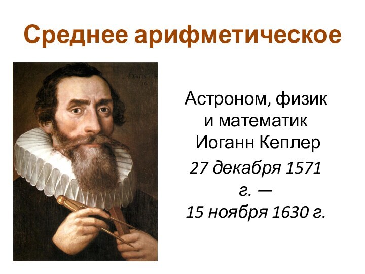 Среднее арифметическоеАстроном, физик и математик Иоганн Кеплер27 декабря 1571 г. — 15 ноября 1630 г.