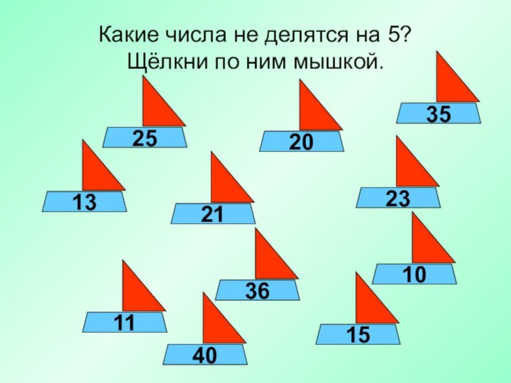 Какие числа не делятся на 5? Щёлкни по ним мышкой.