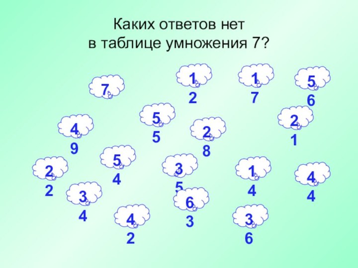 Слайд 7 Каких ответов нет в таблице умножения 7?