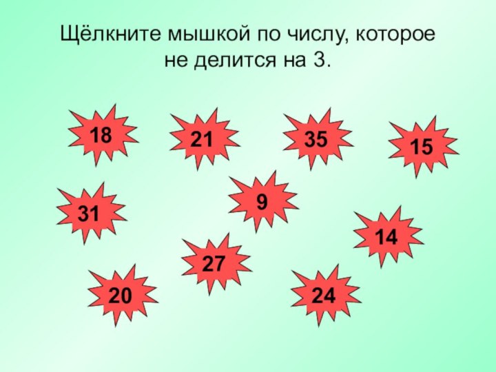 Слайд 3 Щёлкните мышкой по числу, которое не делится на