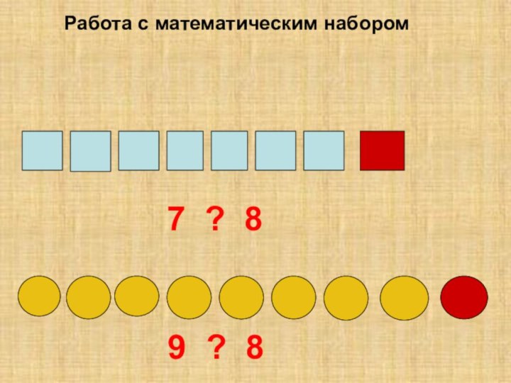 В математику тропинки   одолеем без запинки1 классУрок 26 Сосчитаем медвежат! 107010040905020 49167283510 49167283510 Молодцы! Игра «Угадай числа»Какие это фигуры?Сколько кругов? Квадратов?Сколько красных фигур?Сколько желтых фигур?Восстановите запись:? + ? = 5 Работа с математическим набором7 ? 89 ? 8 Составь и реши задачу8 - 5 = 3 8 – 4 = 4 4 + 2 = 6 Геометрия Начертить отрезки:8 см5 см 4 – 3=5 – 1 =6 – 3 =3 + 5 =6