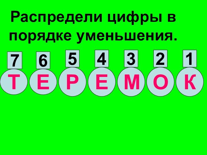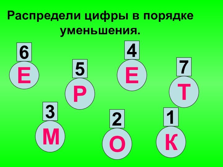 Распредели цифры в порядке уменьшения.352417МОКРЕТ