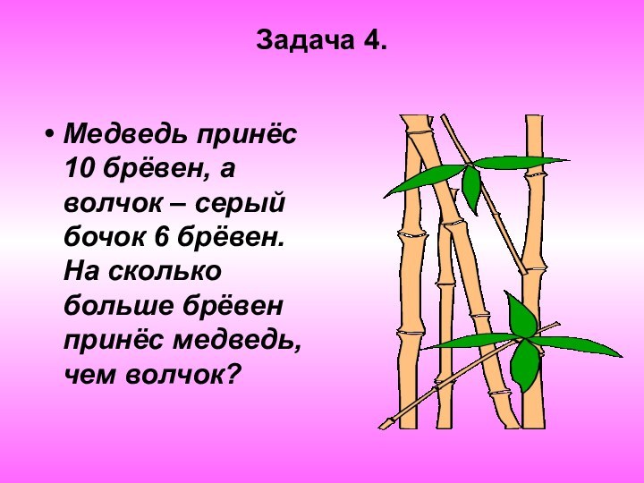 Задача 4.Медведь принёс 10 брёвен, а волчок – серый бочок 6