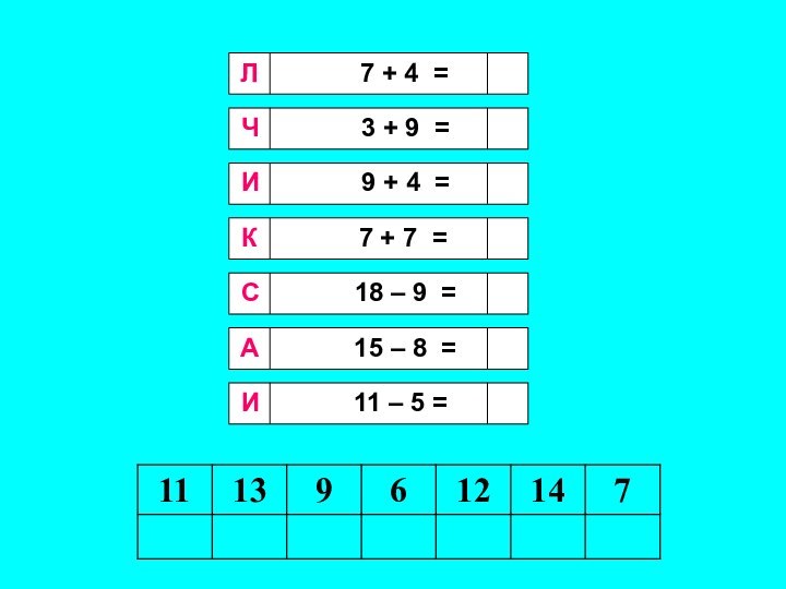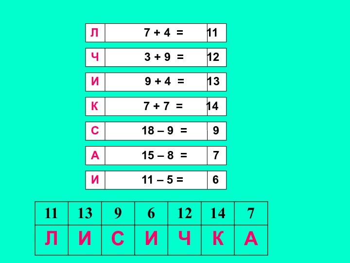 Презентация на тему Закрепление случаев сложения и вычитания с переходом через десяток. 1 класс