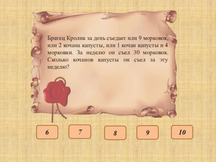 4 морковки. За неделю он съел 30 морковок. Сколько кочанов капусты он съел за эту неделю?
