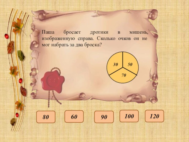 Паша бросает дротики в мишень, изображенную справа. Сколько
