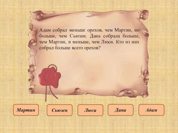 Адам собрал меньше орехов, чем Мартин, но больше,