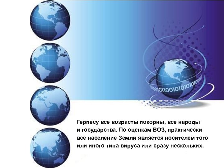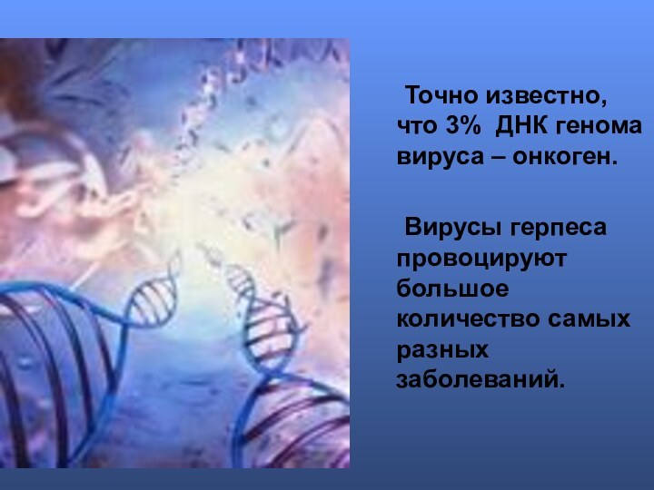 типов могут переходить один в другой.По статистике человеческой смертности от вирусных инфекций герпес занимает второе место после гриппа (СПИД вне конкурса, от него умирают все заразившиеся).