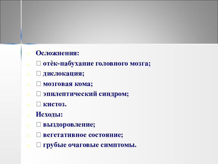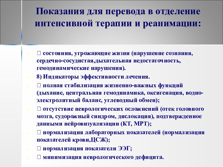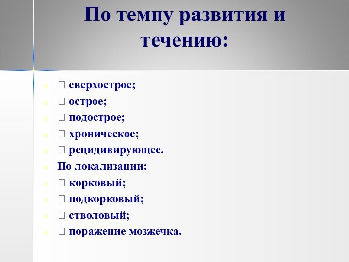 острого или подострого течения с изменением сознания, когнитивных функций и