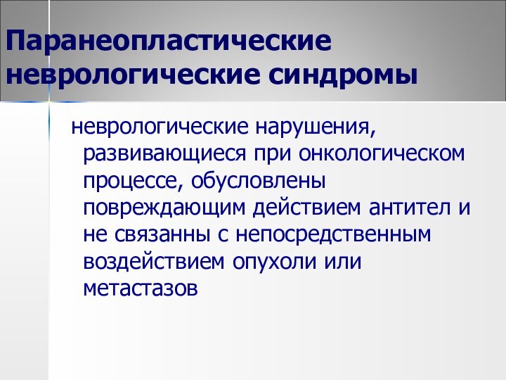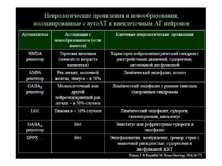 30-40% случаев – антитела не выявляются, что не может служить основанием для исключения диагноза паранеопластического неврологического синдрома