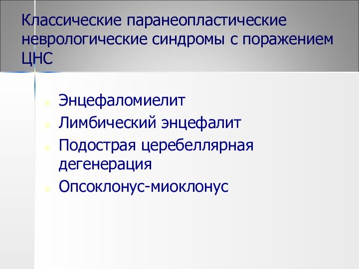 Классические паранеопластические неврологические синдромы с поражением ЦНС