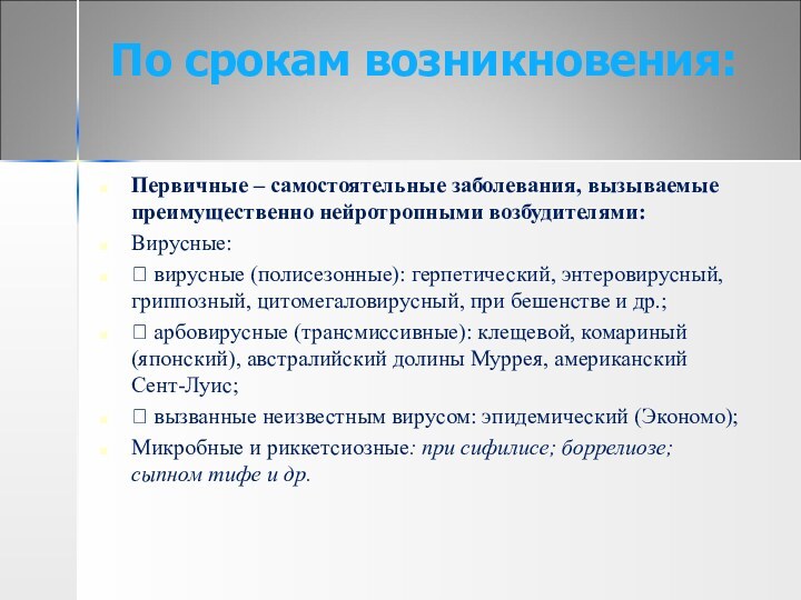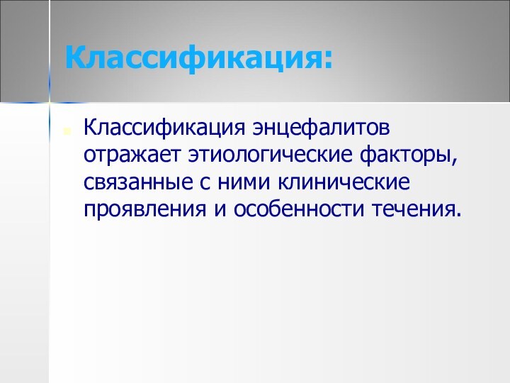 Классификация энцефалитов отражает этиологические факторы, связанные с
