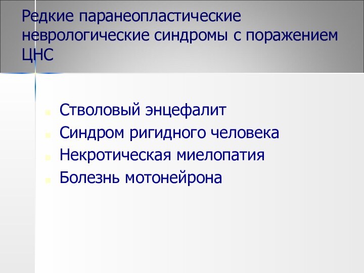 Редкие паранеопластические неврологические синдромы с поражением ЦНС
