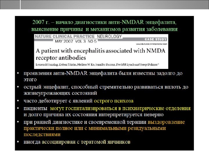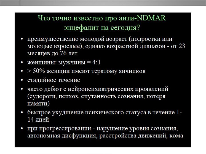 Энцефалит с АТ к NMDA-рецепторам – наиболее изученный