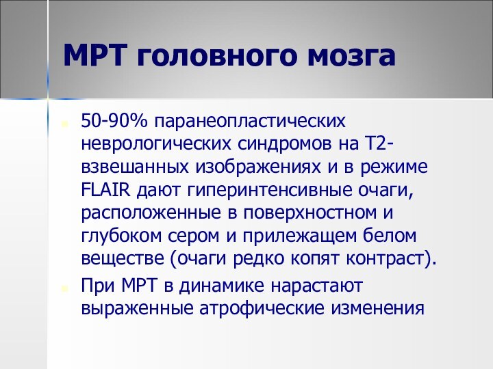 50-90% паранеопластических неврологических синдромов на Т2-взвешанных