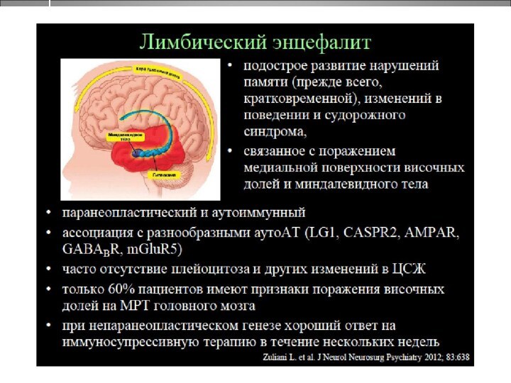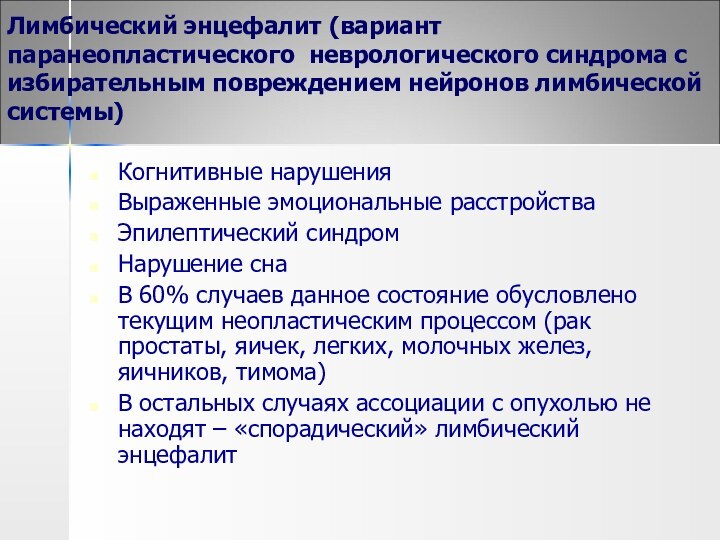 Лимбический энцефалит (вариант паранеопластического неврологического синдрома с избирательным