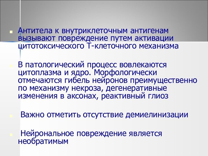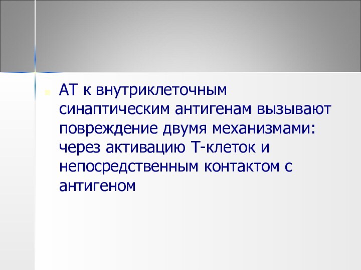 АТ к внутриклеточным синаптическим антигенам вызывают повреждение двумя