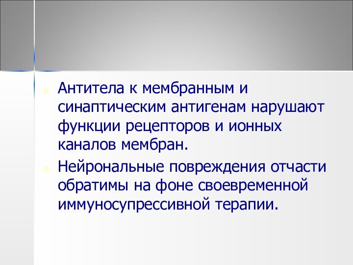 Антитела к мембранным и синаптическим антигенам нарушают функции