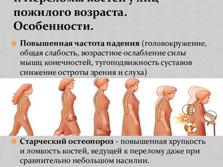 1. Переломы костей у лиц пожилого возраста. Особенности.