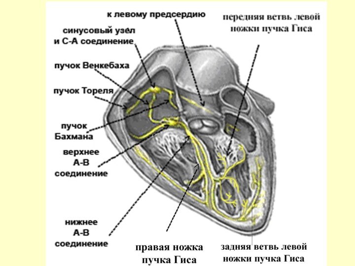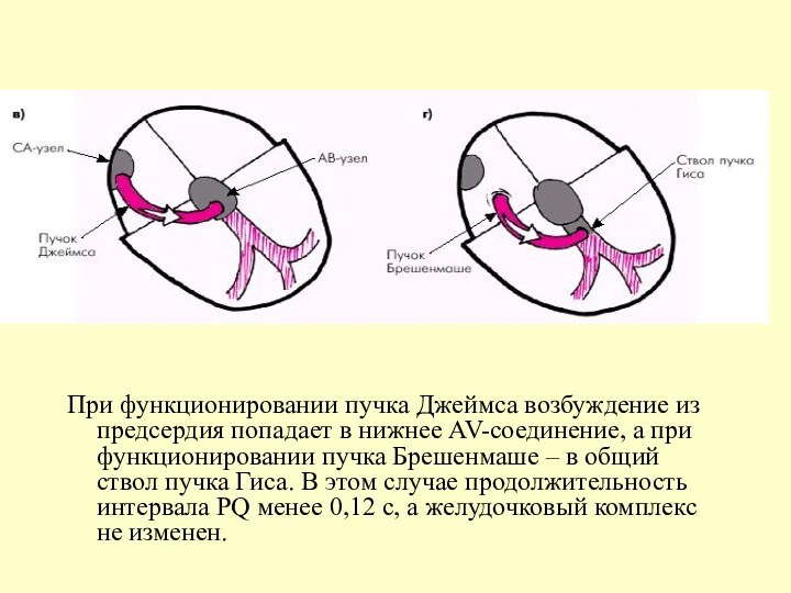 в нижнее AV-соединение, а при функционировании пучка Брешенмаше –