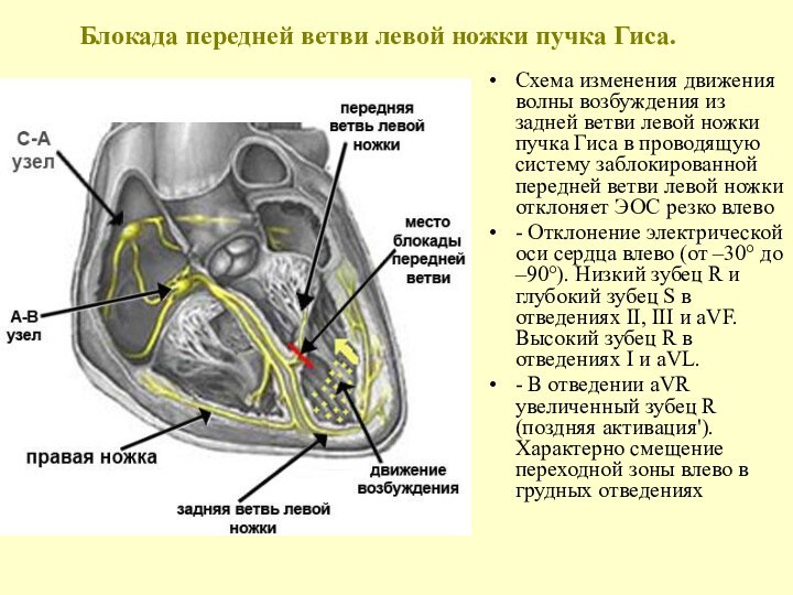 пучка Гиса в проводящую систему заблокированной передней ветви левой ножки отклоняет ЭОС резко влево