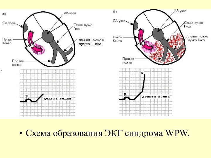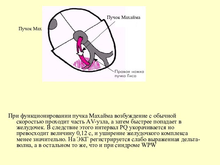 желудочек. В следствие этого интервал PQ укорачивается но превосходит величину 0,12 с, и уширение желудочкого комплекса менее значительно. На ЭКГ регистрируется слабо выраженная дельта-волна, а в остальном то же, что и при синдроме WPW