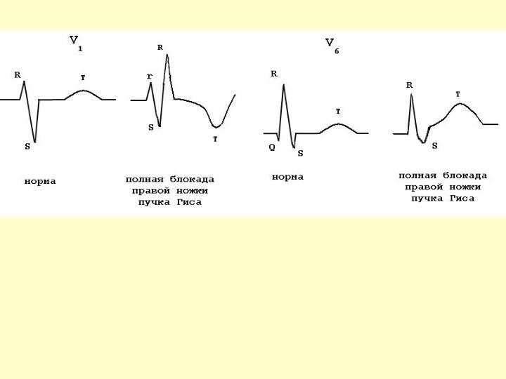 (часто и в отведении V2) желудочковый комплекс представлен одним из вариантов rSR′, rsR′, RSR′, RsR′ или rR′;